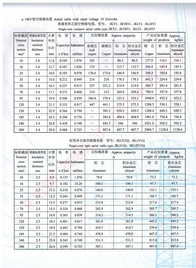額定電壓10kV架空絕緣電纜